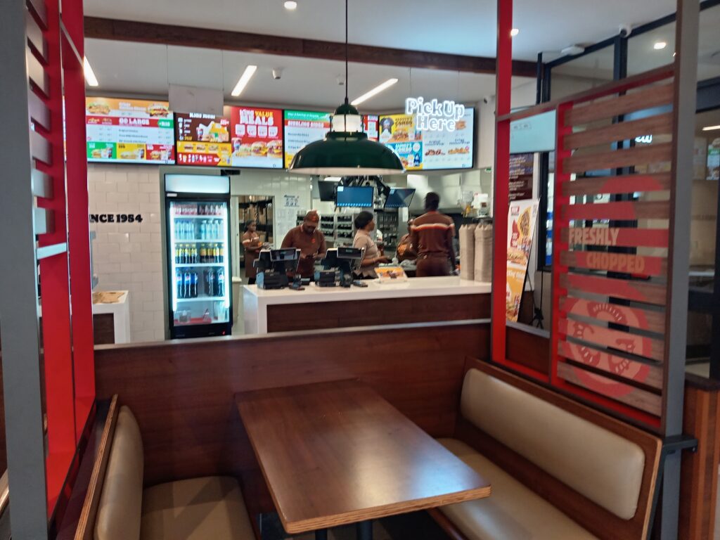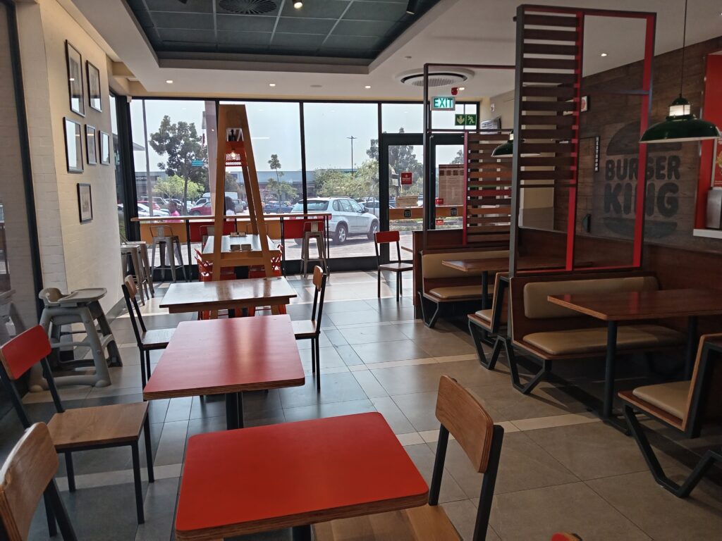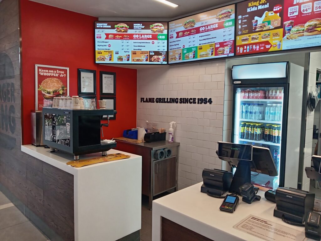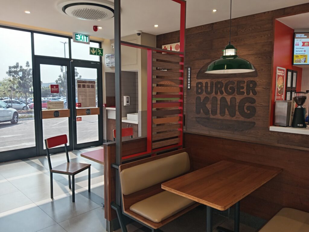 Burger King TRADING HOURSMonday – Thursday 9:00 -21:00Friday – Saturday 9:00-22:00Sunday 9:00-21:00Address : Magalies Hills Shopping Centre Corner Hendrik Verwoerd, De Boer St, and, Brits, 0250Contact detailsPhone : 014 541 0108The original HOME OF THE WHOPPER®, our commitment to premium ingredients, signature recipes, and family-friendly dining experiences is what has defined our burgers
